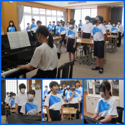 校歌を歌い、パート練習の取り組み方の確認をしました。持ち物では、元気ややる気などの意見も出ていて、思いを感じました。全員が、スムーズに練習に取りかかれるように動けるようになっておきましょうね。