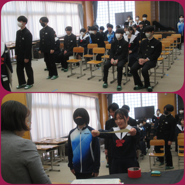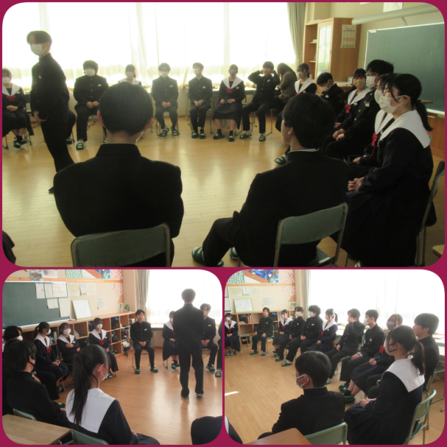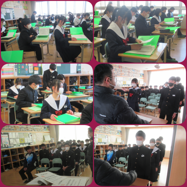 卒業に向けて、式の練習やレクリ、プリント類の整理などを行いました。中学校生活も残りわずかとなってきましたね。