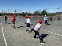 ドリブルや正確にパスをする練習をしました。最後に、グループ対抗的あてゲームをしま...
