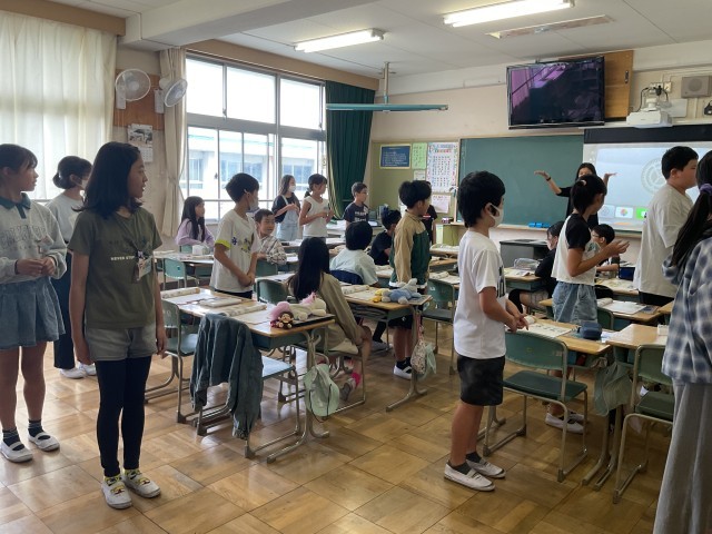 道案内をする時に使う表現の練習をしました。ゲームで楽しく覚えることができました。