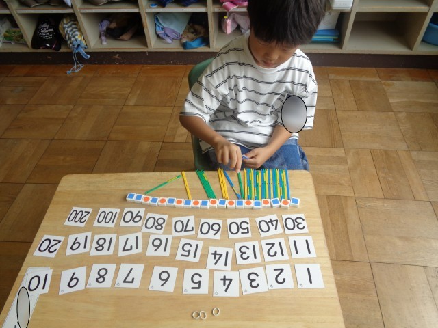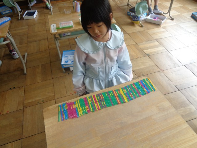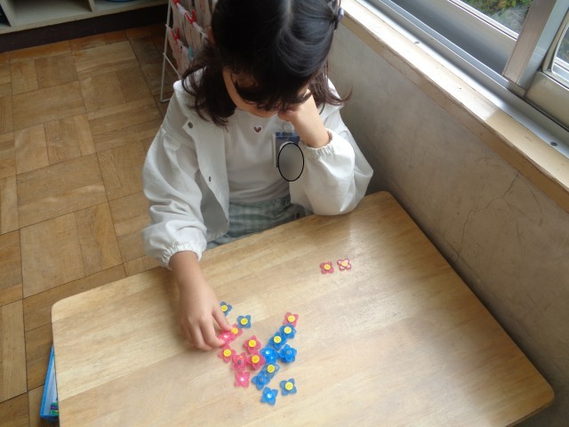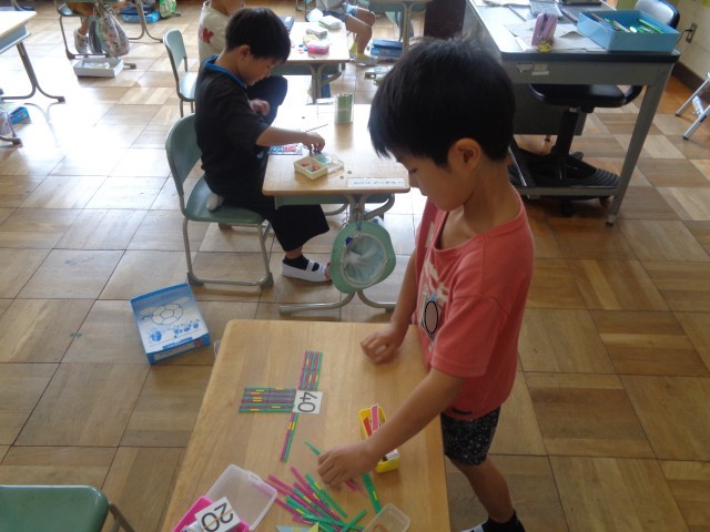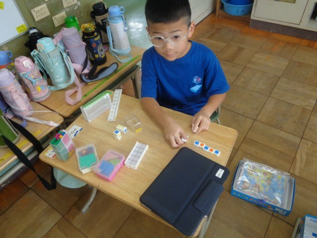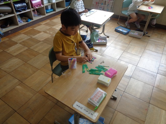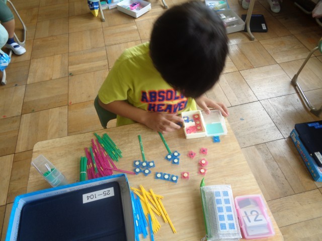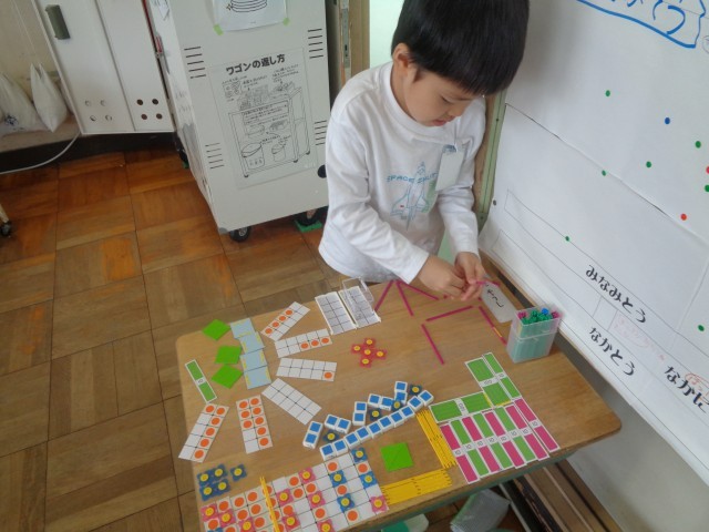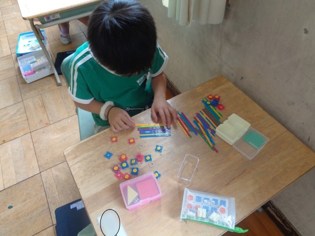 さんすうセットの中のものを組み合わせて、ならべ方の楽しさをあじわいました。