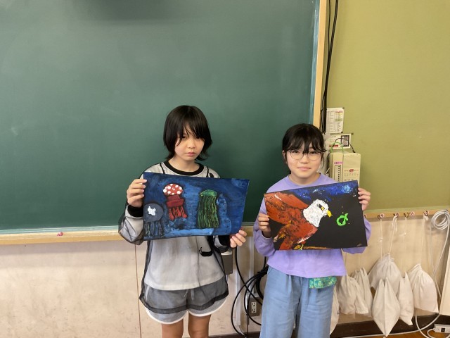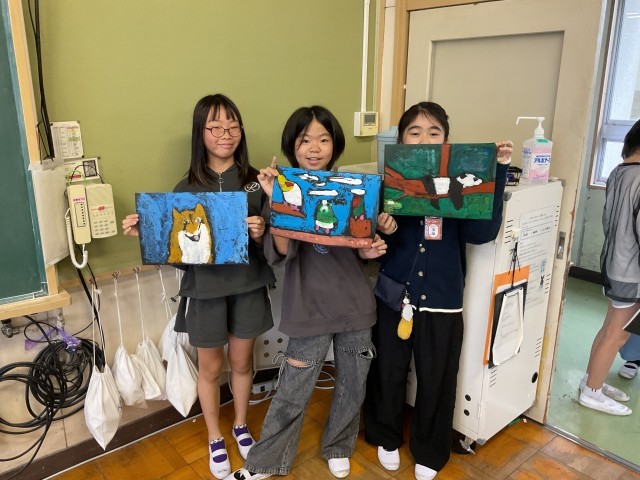 図工競技会の作品が完成しました。色鮮やかな作品に仕上がりました。