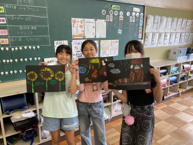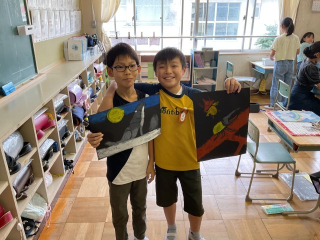 図工競技会の作品が完成しました。色鮮やかな作品に仕上がりました。