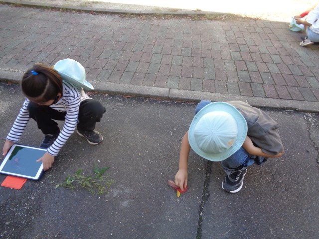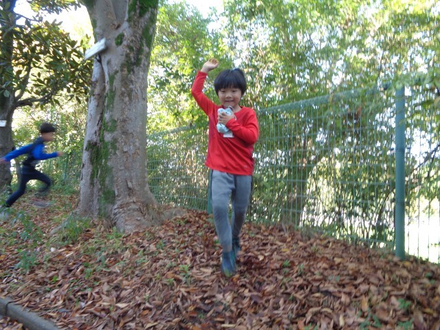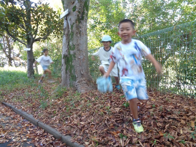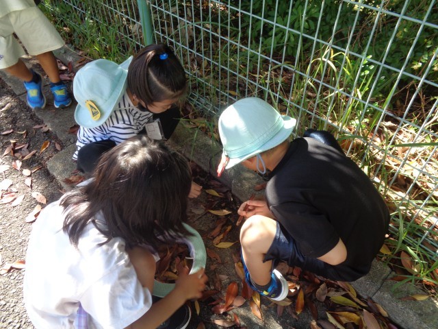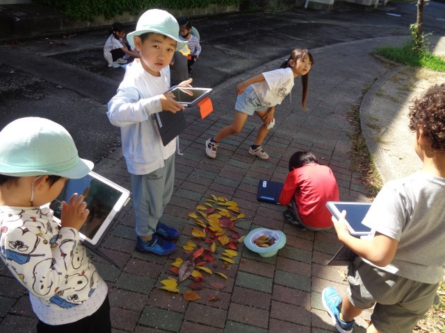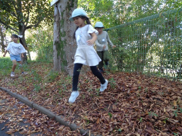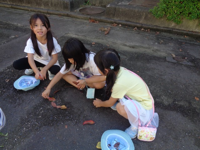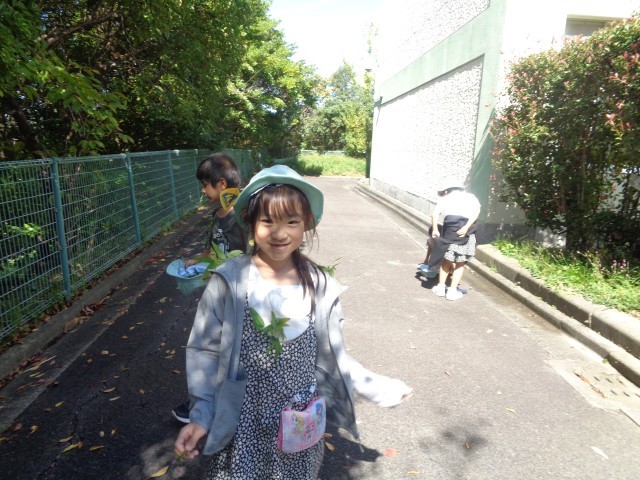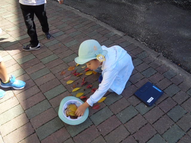 落ち葉の上を歩いたり、秋を感じるものを集めたりしました。