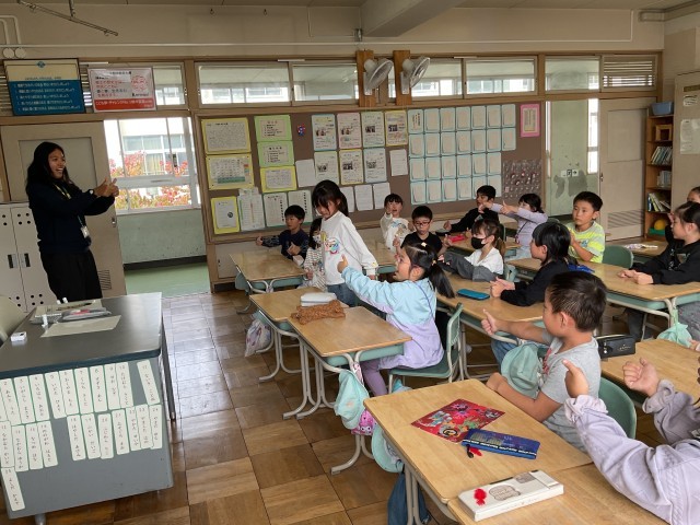 ユキナ先生と外国語の授業です。