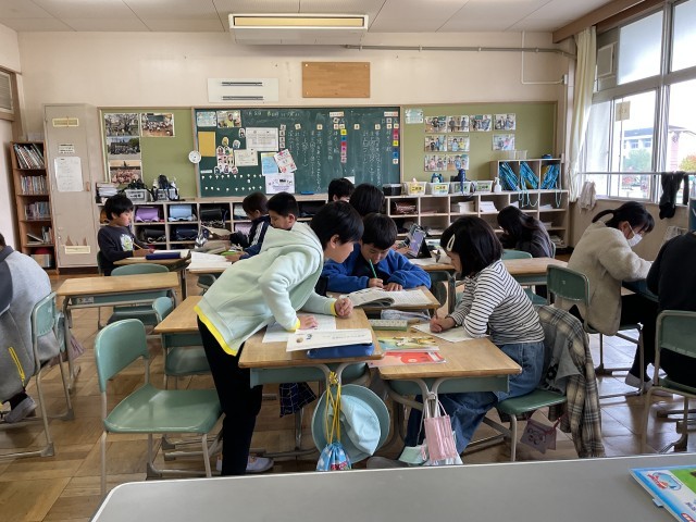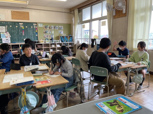 文章を要約するために、中心となる語句や文をみんなで探しました。
