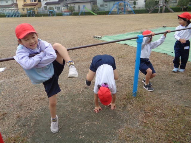 鉄棒は、苦手な技にどんどん挑戦しています。