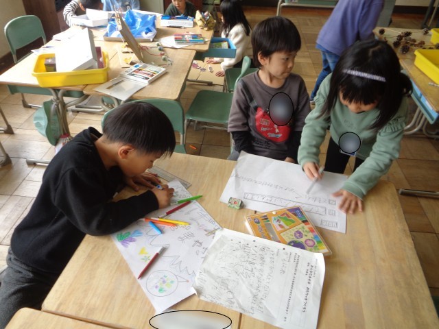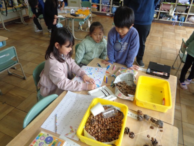 あきのおもちゃをつくって、お店を開く準備をしました。