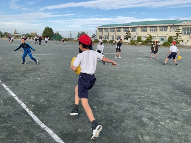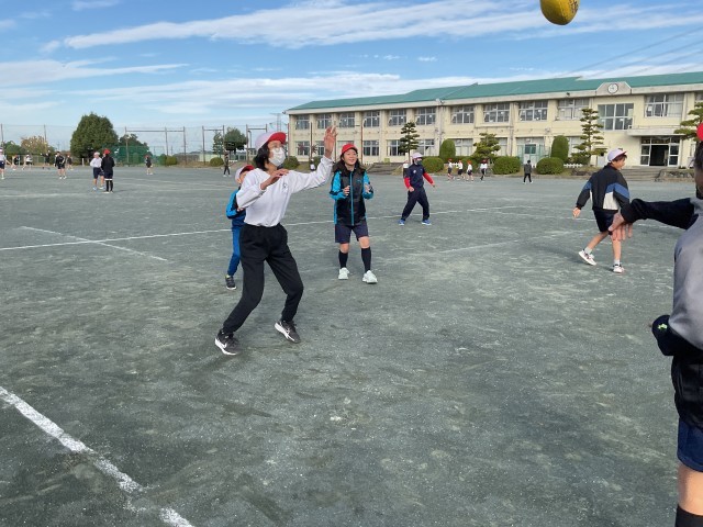 体育のタッチフットの様子です。