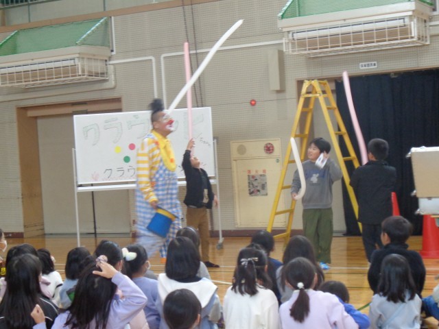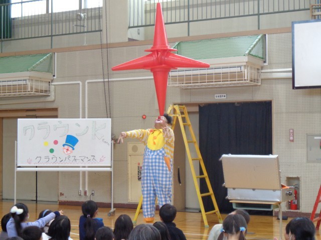 やまももクラブでは、クラウンKさんをお招きして「クラウンKパフォーマンス」を行いました。
