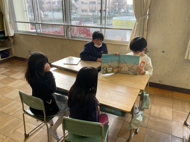 朝の時間にペア学級で「なかよし読書」をしました。5年生が2年生に優しく読み聞かせをしました。