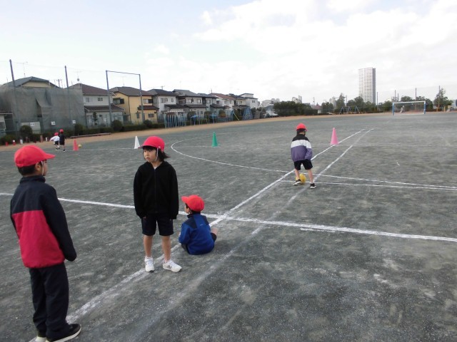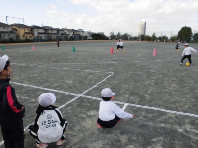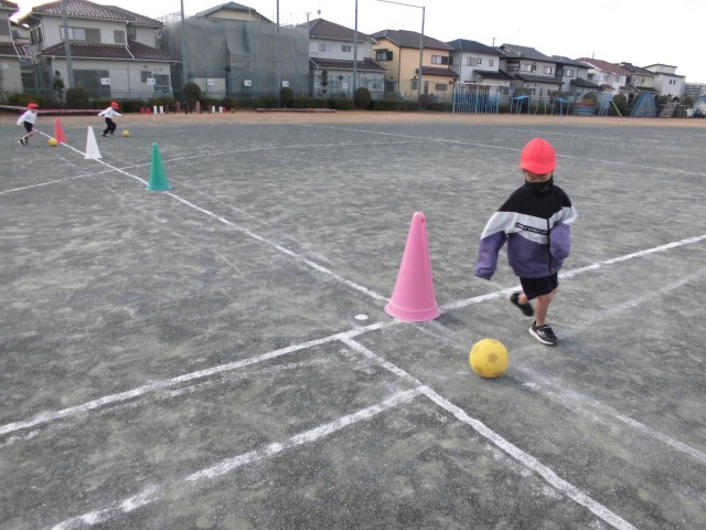ドリブルゲームと、シュートゲームをしました。ボールをけることに、随分慣れてきました。