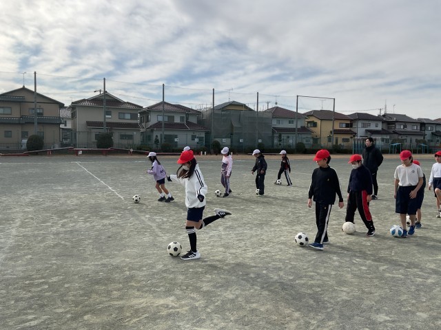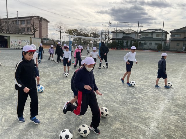 コーディネーション体育がありました。サッカーでドリブルやシュートの練習をしました。