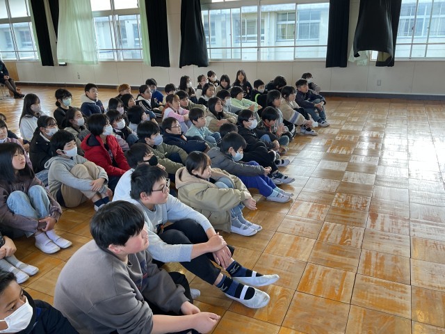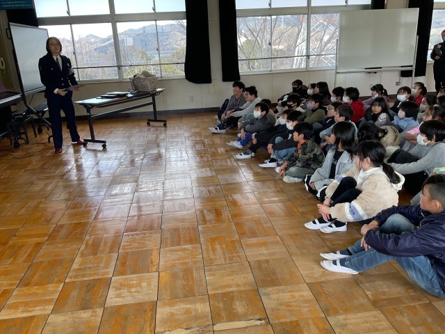 5時間目に小牧警察署から生活安全課の講師の方に来ていただき「サイバー犯罪防止講話」を聞きました。インターネットの使い方や使用上の注意点を聞きました。
