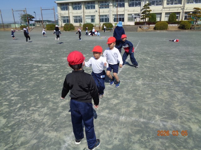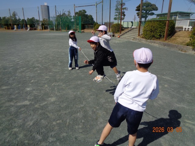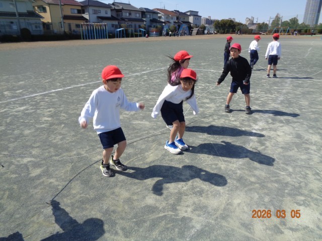 大繩は交代で縄を持ち、歌を歌いながら楽しく活動できました。