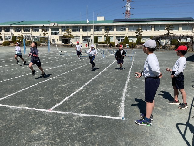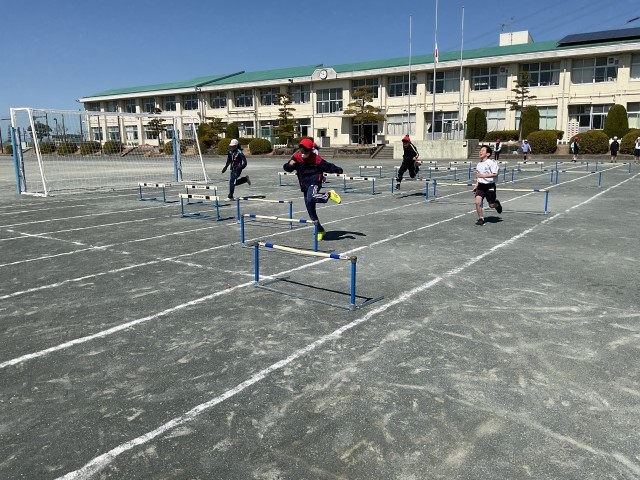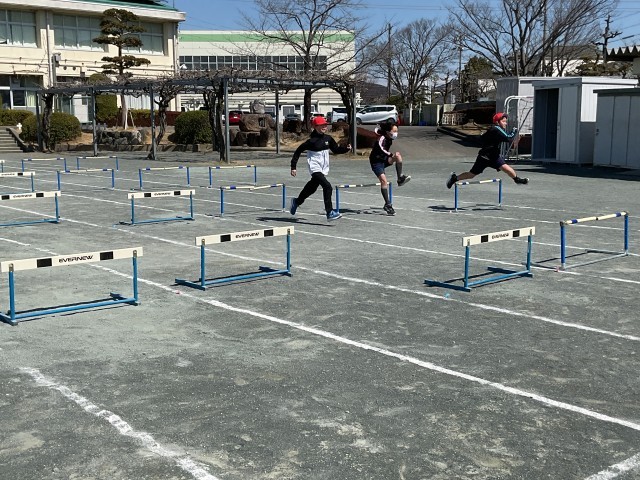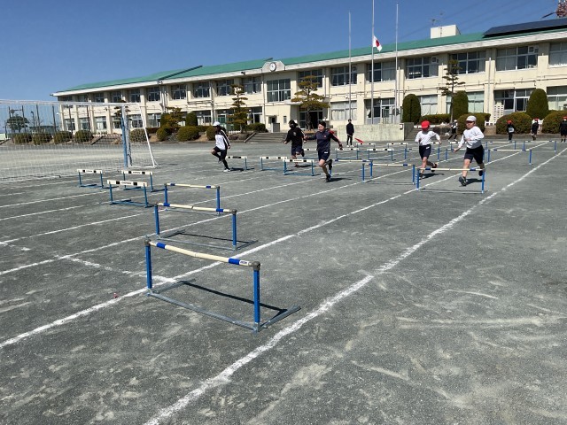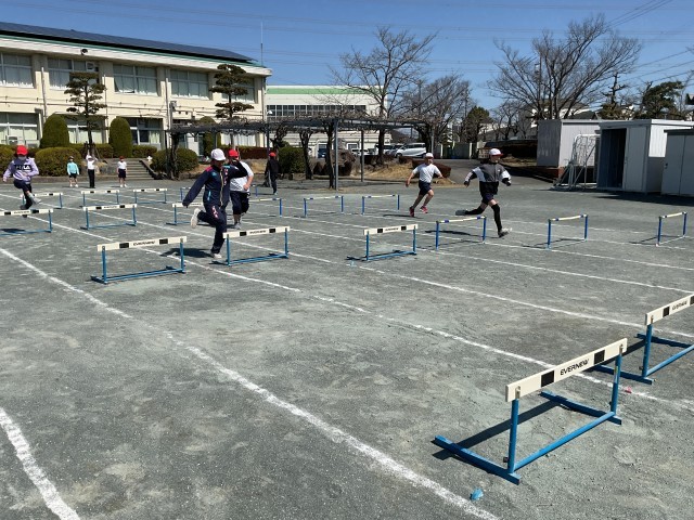 4年生最後の体育はハードル走です。