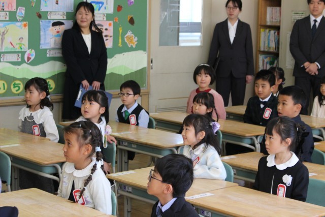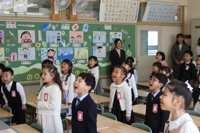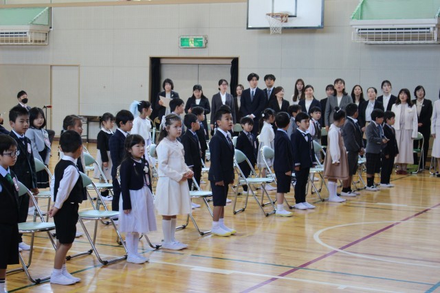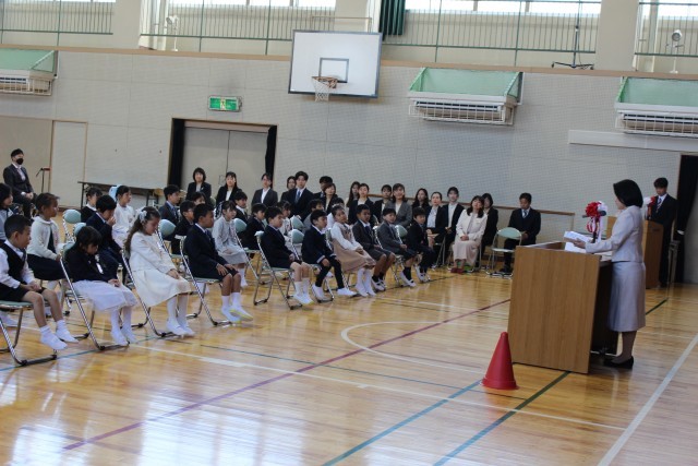 式典の最中、新入生たちは先生や来賓の方々のお話を最後までしっかりと聞くことができ、その立派な姿に驚かされました。また、担任の先生から一人ひとり名前を呼ばれると、「はい!」という元気いっぱいの返事が教室に響き渡りました。自分から進んであいさつをする姿も見られ、これからの学校生活への意気込みが伝わってくる素晴らしい式となりました。