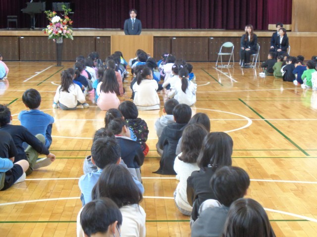 まずは着任式が行われ、今年度新しく光ヶ丘小学校にお見えになった先生方をお迎えしました。先生方お一人お一人からの挨拶を、子どもたちは目を輝かせながら真剣な表情で聞いていました。