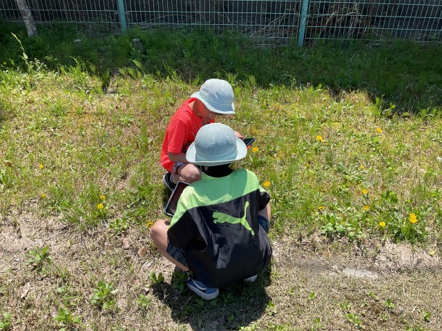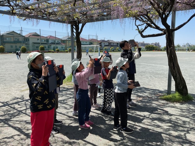 理科「あたたかくなると」の学習で、外へ行き、春の植物や生き物の写真を撮りました。