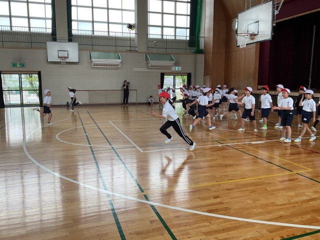 4月の初めは、体育の授業の身なりの確認、廊下歩行の確認、体操の確認などをしました。