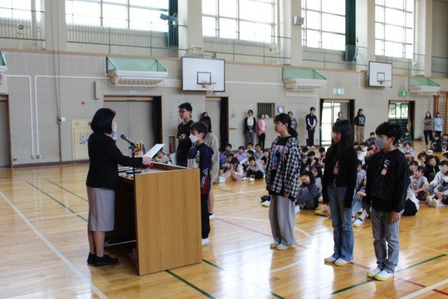 素晴らしい成績を収めた児童や世界大会へ出場する児童に拍手が送られました。新しい組織、新しい目標とともに、いよいよ本格的に学校生活が動き出します。