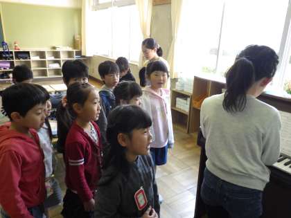 朝、ピアノの上手な6年生のお姉さんが弾いてくれます。