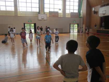 6月23日(金)の朝に仲良し朝放課があり、2、5年は、体育館で行いました。ドッジボール、だるまさんの一日、平均台ジャンケンの三種目のなかから一つをグループで選んで参加しました。