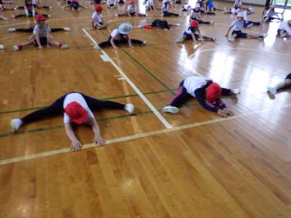 今日のストレッチでは驚くべき軟らかさを見せてくれる子もいました。