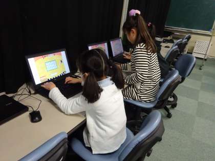 コンピュータを使ってローマ字打ちの練習を行っています。