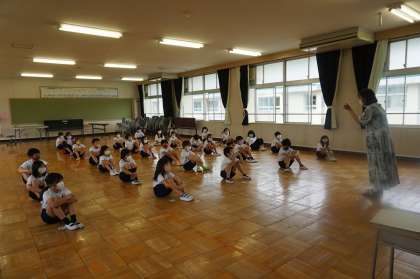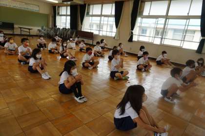 測定前には、熱中症を防ぐためにするべきことや、手指消毒の正しく効率的な方法などを保健の先生に教えていただきました。