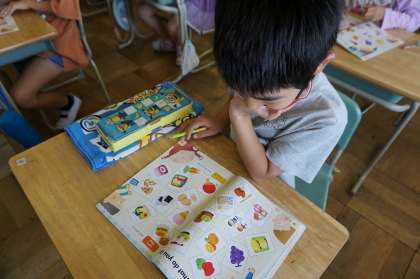 今日は、お友達の好きなフルーツ、スポーツ、色などの聞き方を勉強しました。
