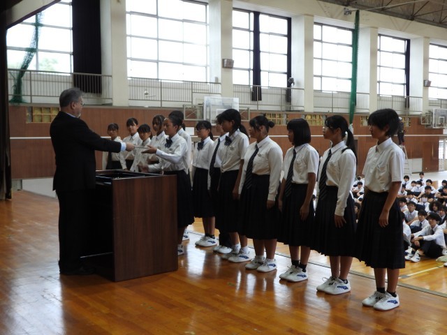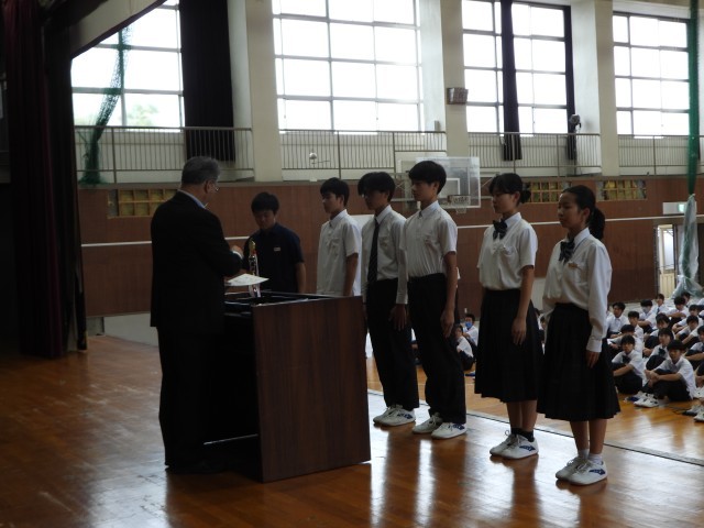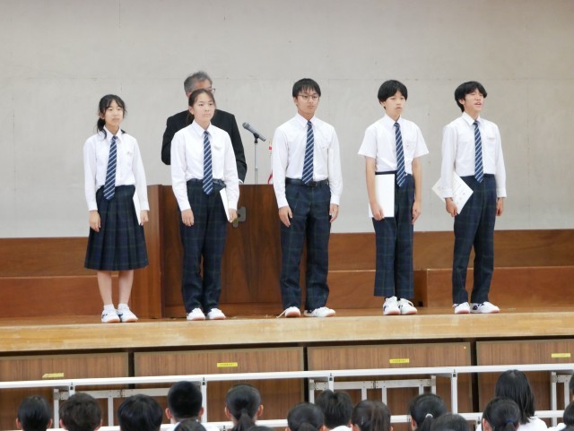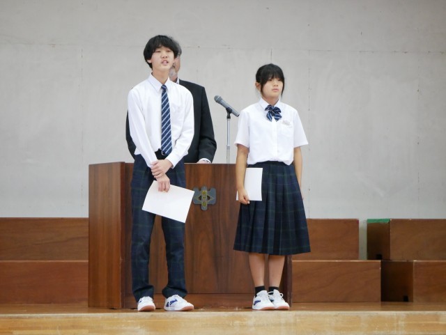 認証式では、後期学校を引っ張っていくリーダーとして、覚悟のこもった返事が体育館に響き渡りました。
