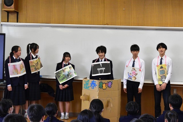 修了式前日に2年生最後の学年集会を行いました。各クラスから1年の出来事や振り返りの発表が学年生徒会からありました。