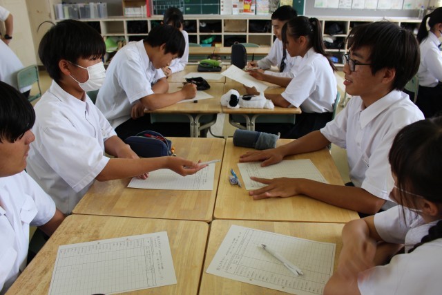 自分の長所を見つめ直すため、「私から見た私」と「友達から見た私」について話す活動をしました。