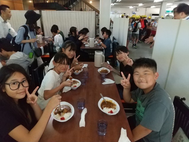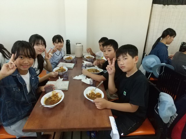 お昼は松本家さんのカレーをいただきます。朝が早かった子どもたちは,あっという間にたいらげていました。