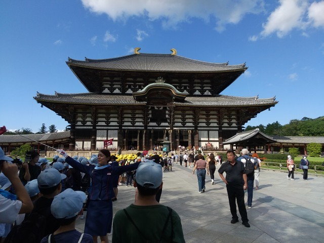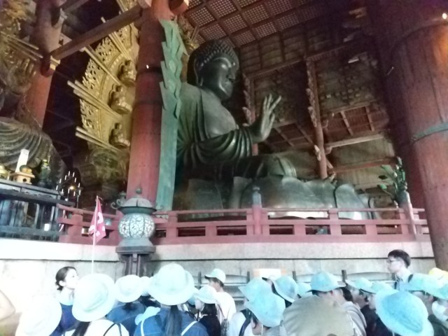 いよいよ大仏殿に入ります。奈良の大仏の大きさに息をのむ子どもたち。大仏が現代まで残ってきた,そして先人たちが遺してきた,その歴史の重さを感じ取ることはできたかな?