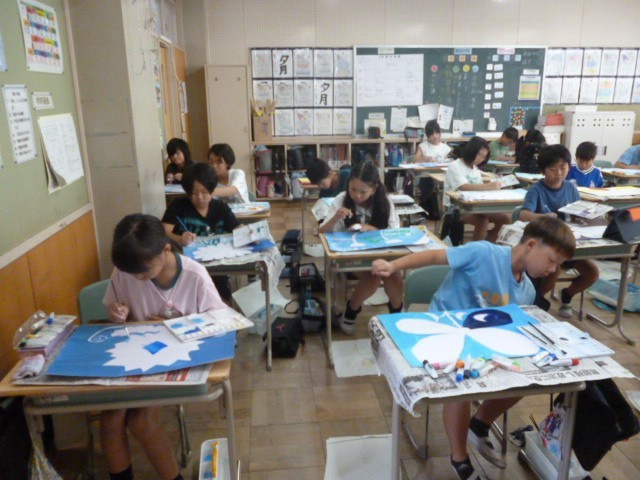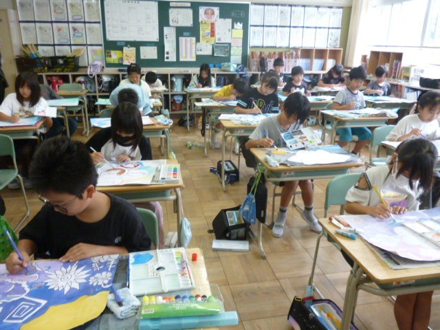 どのクラスでも自分の思い描くまぼろしの花を、真剣に描く様子が見られました。色づかいを工夫したり、技法を取り入れたりして、思い思いに自分だけのまぼろしの花を作ることができていました。