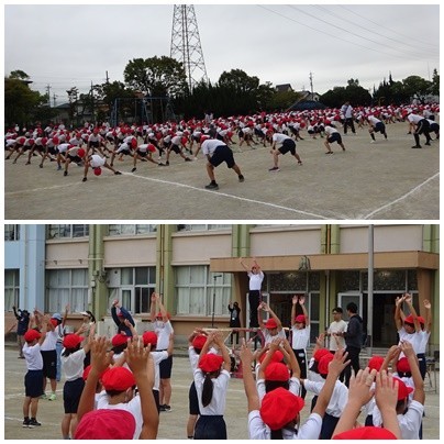 全校練習2回目です。開・閉会式と準備運動の練習を行いました。