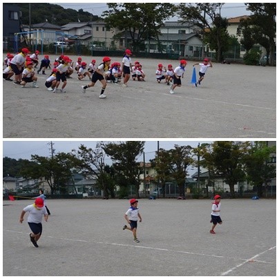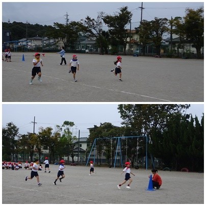 今にも雨が降りそうな中で,運動会に向けて仕上げの練習を行いました。