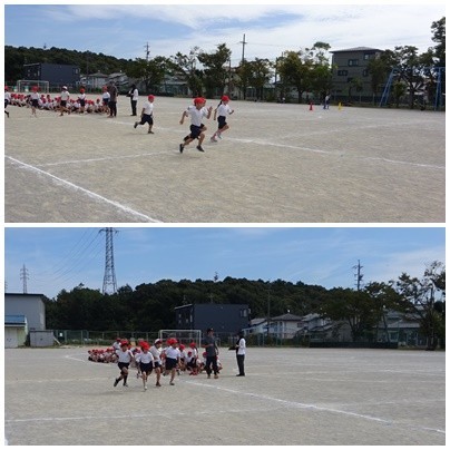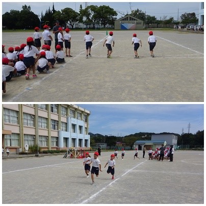運動会練習に励む3年生。一等を目指して走ります。