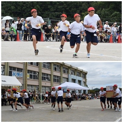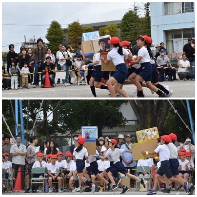 5年生は,徒競走と競遊『団結の呼吸・伍の型 障害物競走!!』です。