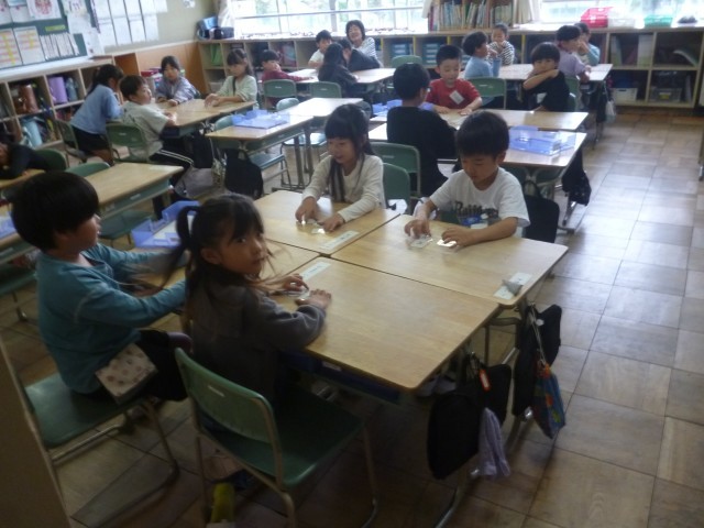 みんなの大好きな外国語活動がありました。今日は英語で1から10まで数えることに挑戦しました。歌ったり、ゲームをしたりして、何度も数字を英語で言っているうちに、みんなすらすらと英語が出るようになっていました。「わたしは、7班だから、Seven」「ぼくは3班だから、Threeだよ。」また次にユキナ先生と会えるのが楽しみになりました。
