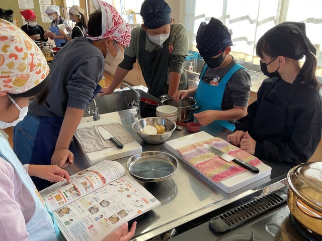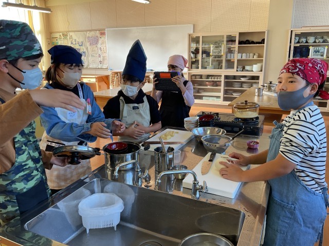 5年生 調理実習でご飯と味噌汁を作ったよ!(1組)