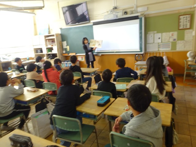 「にじいろ絵本」の方々による読み聞かせ,2日目です。今日は3年生対象です。「にじいろ絵本」さんの読み聞かせの話術とストーリーに引き込まれる子どもたち。お話に集中している様子がうかがえました。1年生の読み聞かせには11月に来ていただけます