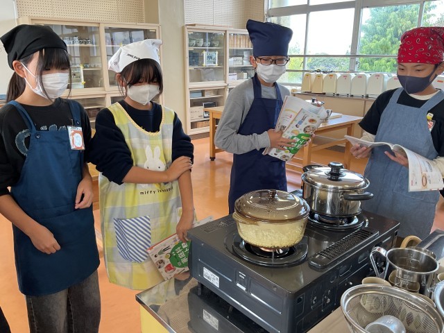 5年生 調理実習でご飯と味噌汁を作ったよ!(3組)