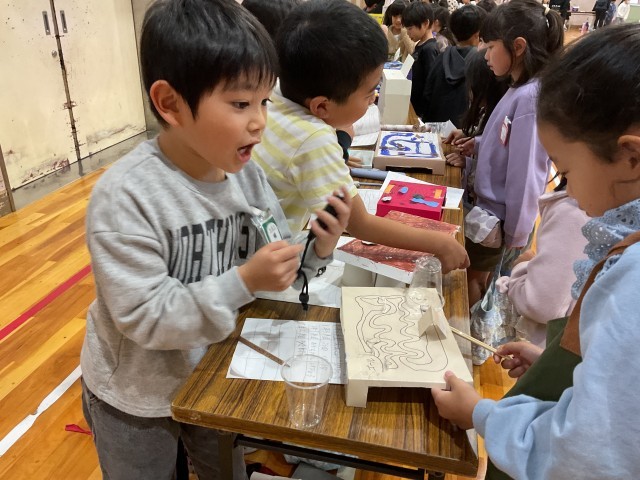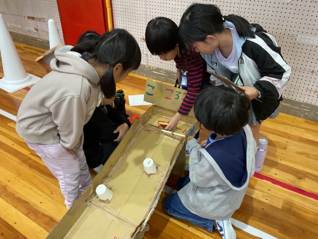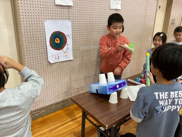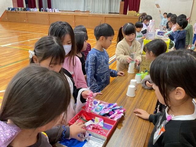 生活科の「うごくうごくわたしのおもちゃ」で作ったおもちゃを使ったお店を準備し、1年生を招待しておもちゃまつりを行いました。