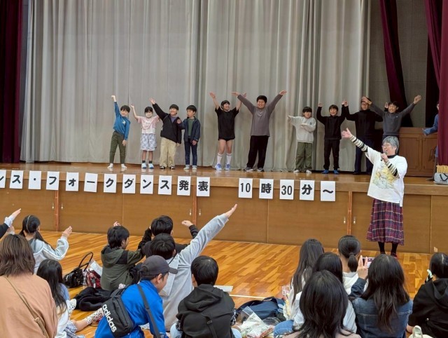 最後には、「フラダンス」「フォークダンス」を教えていただき、ステージの上とフロアに分かれて、みんなで楽しく踊ることができました!