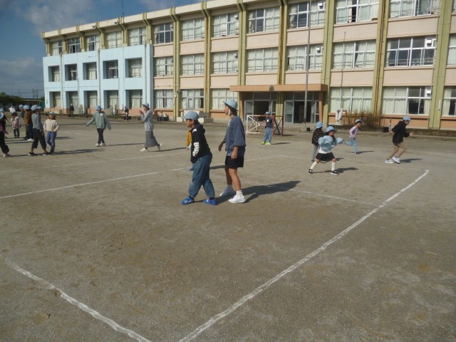 待ちに待った6年生とのふれあい活動がありました。早朝まで雨が降っていたせいで、校庭には水たまりが・・・。1年生は「おひさまでてきて!」「うんどうじょう、かわいて!」と気もそぞろでしたが、みんなの願いが叶って、行うことができました。6年生のリーダーシップのおかげで、「だるませんがころんだ」や「おにごっこ」など、どの班もスムーズに遊びが進み、短い時間でしたが、時間いっぱい楽しむことができました。「もっとあそびたい!」「つぎはいつかなぁ?」6年生に遊んでもらえて大満足の1年生でした。6年生との時間は残り少なくなってきました。これからも楽しい思い出をたくさん作れるといいです。