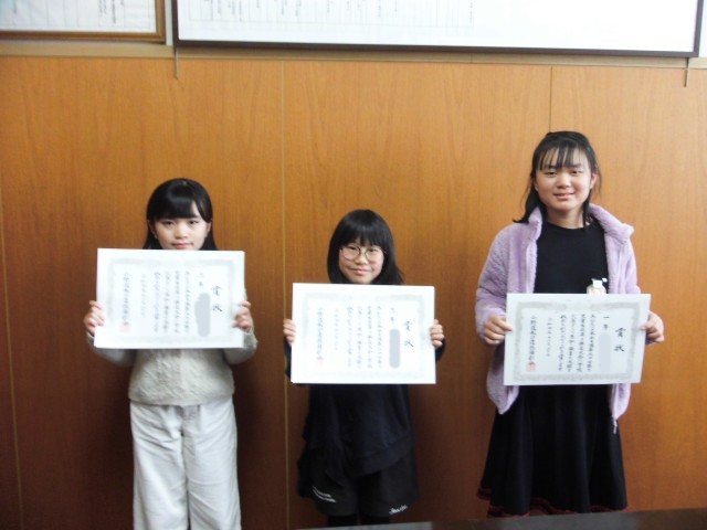 また、県下児童生徒席上揮毫大会(小野競書会)の成績優秀児童や小牧福祉大会で表彰された児童の表彰伝達もありました。