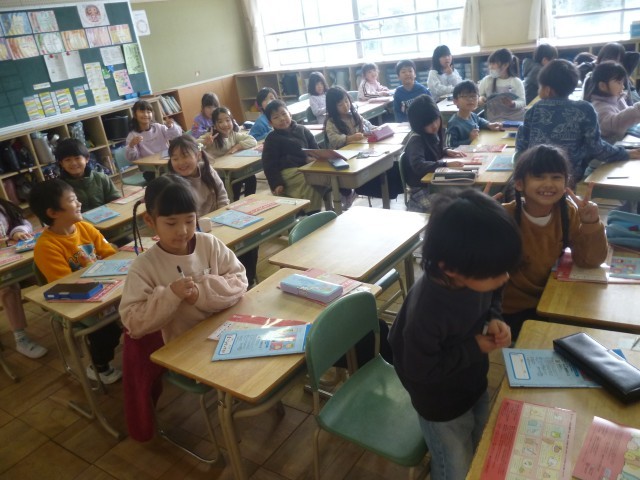 新学期、久しぶりの再会です。「お年玉でおもちゃを買ったよ」「おもちを5個食べたよ!」楽しい会話がたくさん聞こえてきました。始業式で校長先生から目標を持つことの大切さについてのお話がありました。1年生の目標は「かっこいい2年生になる準備をすること」でしょうか。それぞれの目標を胸に、3学期たくさんの学習に挑戦していきたいとおもいます。